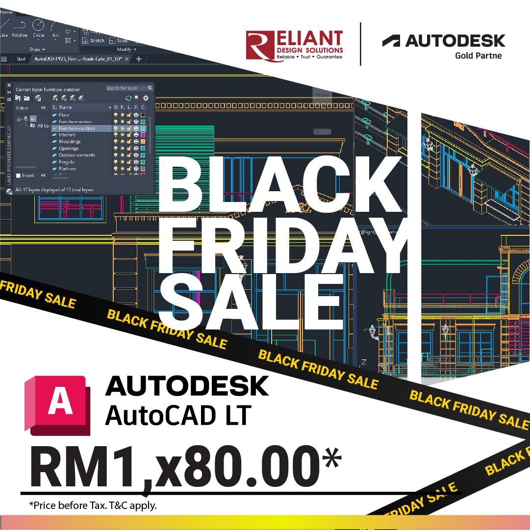 In this Black Friday, it is also your chance to get AutoCAD LT at a discounted price! Whether you’re an architect, engineer, contractor, or designer, AutoCAD LT gives you the essential 2D drafting tools you need to work faster and more accurately.